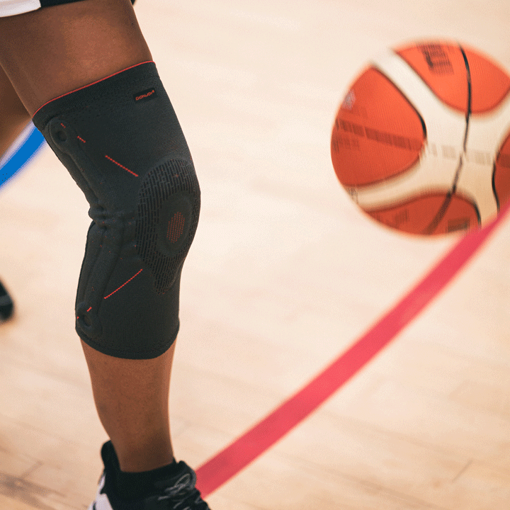Joelheira de tecido elástico com reforço rotuliano O Anel de silicone contorneado de GenuForce® ajuda a proteger e sustentar a rótula, enquanto suas articulações bilaterais flexíveis ajudam a proporcionar alívio e estabilização para a articulação do joelho.