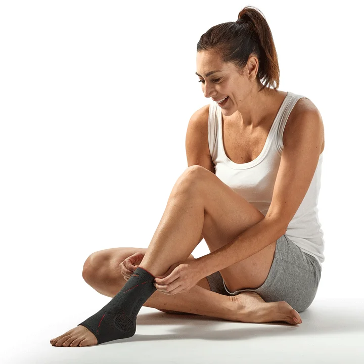 Com almofadas de silicone integradas aos maléolos em combinação com o tecido elástico multidirecional, proporciona alívio e estabilização à articulação do tornozelo.